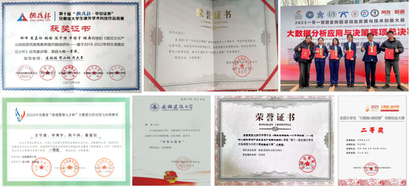 围绕立德树人根本任务,本专业高度重视并积极鼓励师生参加各类学科技能竞赛,通过搭建“三创工作室”工作载体、构建“1+14+N”工作方法,营造出“以赛促教、以赛促学、以赛促创”的良好氛围。通过持续培养,同学们专业素养和综合素质大幅提升,先后承担国家级大学生创新创业项目20余项,荣获“挑战杯”、“互联网+”等300多项国家级、省部级学科竞赛奖项,发表相关学术论文100多篇,撰写的12篇研究报告获得国务院发展研究中心表彰。