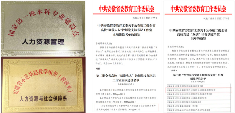 历经20载奋发进取,beat365在线唯一官网人力资源管理专业形成了“专业发展强、师资队伍强、教学科研强,素质培养好、学习体验好、毕业出路好”的新格局。2015年获批为省级综合改革试点专业,2016年获批省级卓越人才培养计划建设项目,2019年获批省级一流本科专业建设点,2021年获批国家级一流本科专业建设点,2022年获批省级新文科专业建设立项。所在支部先后获批省级“党建工作样板支部”培育创建单位、省级“双带头人”教师党支部书记工作室立项建设单位,所在基层教学组织先后获批省级基层示范教学组织、省级教学创新团队、省级虚拟教研室、校级“三全育人”先进集体等荣誉称号。