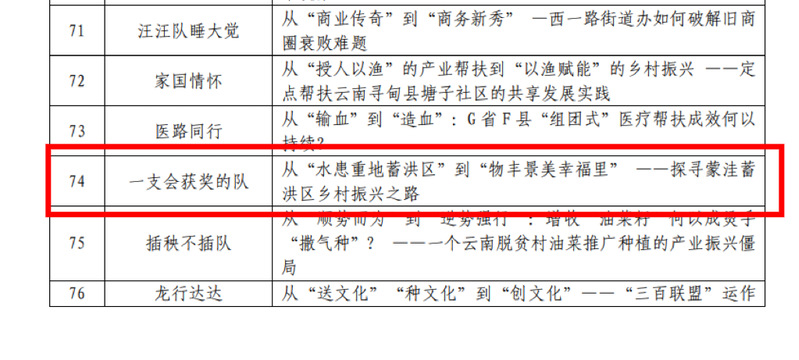 本网讯 4月11日晚,2024年中国研究生公共管理案例大赛初赛第二轮评选结果公示,由公共管理学院王秉义老师指导,研究生张葳、刘壮、朱昊鹏小组撰写的案例《从“水患重地蓄洪区”到“物丰景美幸福里”——探寻蒙洼蓄洪区乡村振兴之路》成功入围第八届中国研究生公共管理案例大赛初赛前20%,获得“中国专业学位案例中心公共管理案例库”入库资格。这是我院首次参与中国研究生公共管理案例大赛,本届案例大赛自启动以来,共有来自260所院校的2597支队伍报名参赛,来自256所院校的2111篇案例通过文本审查成功进入评审,竞争异常激烈。