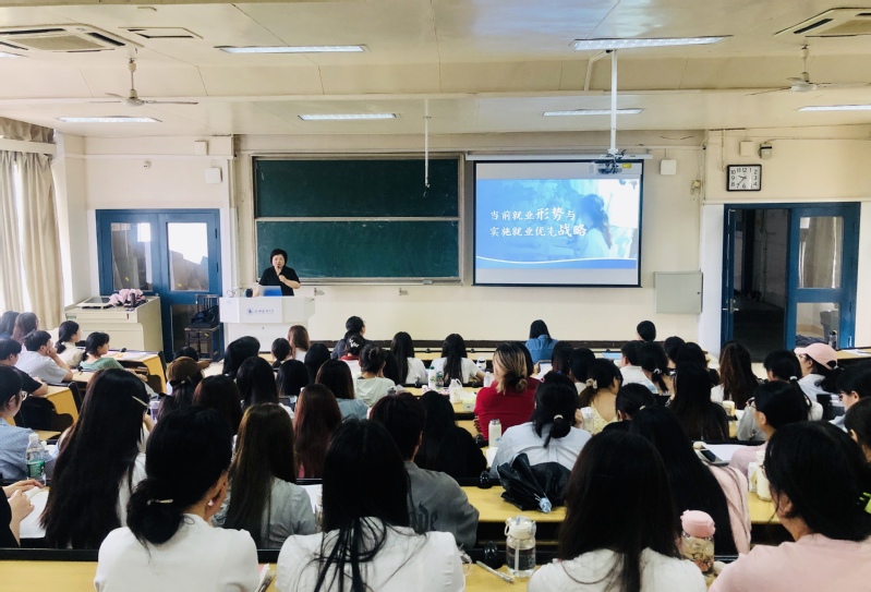 李早以《当前就业形势与实施就业优先战略》为题,联系社会现实和学生实际,“形势总体稳定”、“就业压力尚存”、“确保就业优先”、“着力拓宽渠道”四个方面进行了分析阐释引导学生提升综合素养做好个人职业规划,鼓励学生树立科学的成才观、就业观和择业观,倡导学生将小我融入大我,在服务党和国家事业的进程中实现职业理想和人生价值。希望同学们能够对就业进行深入思考,厘清专业、职业、行业、事业四者的关系,结合实际情况合理设定就业目标。