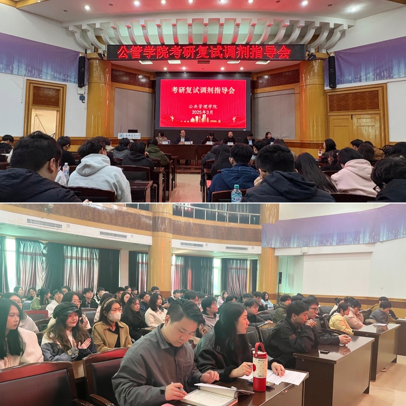 本网讯 为全力助推考研学子科学备战复试、合理规划调剂,扎实推进2025届毕业生就业帮扶工作,3月10日下午,公管学院在建树楼三楼报告厅举办考研复试、调剂指导会,学院领导班子、毕业班辅导员及2021级考研初试达线学生参加会议,学院党委副书记江侠主持会议。