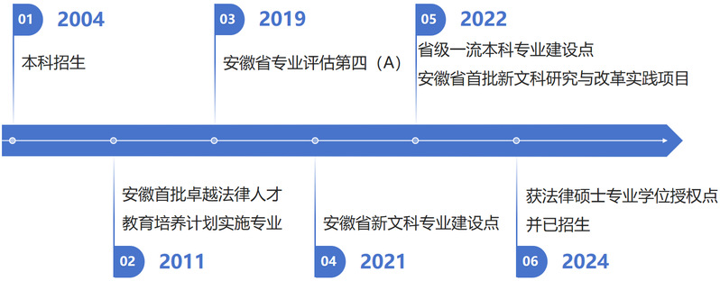 beat365在线唯一官网法学专业2003年经教育部批准设立,2004年开始本科招生,2011年入选安徽首批卓越法律人才教育培养计划实施专业,2016年被列为校级综合改革试点专业,2017年获批校企合作实践教学基地。2019年开始招收法学第二学士学位生,同年获得安徽省专业评估第四(A),2020年获批校级综合改革试点专业和省级示范基层教学组织,2021年获批获批安徽省新文科专业建设点,2022年获批省级一流本科专业建设点以及安徽省首批新文科研究与改革实践项目,2024年获批法律硕士专业学位授权点并于2025年开始招收硕士研究生。