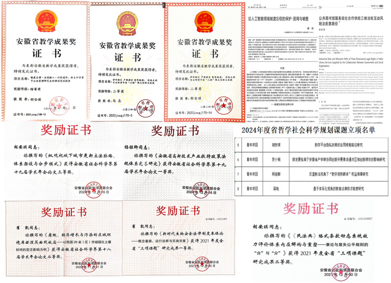 学科竞赛不仅是大学生个人能力提升和展示的平台,也是学生实践创新能力提升的重要途径,更是促进学校教学改革和提高教学质量的有效抓手。近年来,法学专业聚焦立德树人根本任务,配置各类优质资源,推动和开展各项学科竞赛。经过院系两级的精心指导和悉心培育,法学同学近年获得二十多项国家级和省级大学生创新创业项目立项。更是在一系列高等级学科竞赛中屡获殊荣,连续6年指导学生蝉联全国建筑法律文书比赛特等奖,连续4年蝉联安徽省“学宪法、讲宪法”大学生法治素养竞赛一等奖及国家三等奖,获得安徽省模拟法庭比赛冠军、最佳辩手,全国商业精英挑战赛一等奖,安徽省大学生未来辩论赛中获二等奖,安徽省“学宪法、讲宪法”演讲比赛二等奖1项、三等奖3项,安徽省模拟政府比赛二等奖等多类国家级、省级赛事奖励,通过“以赛促教、以赛促学、以赛促创”,推动法学专业人才培养质量持续拔高。