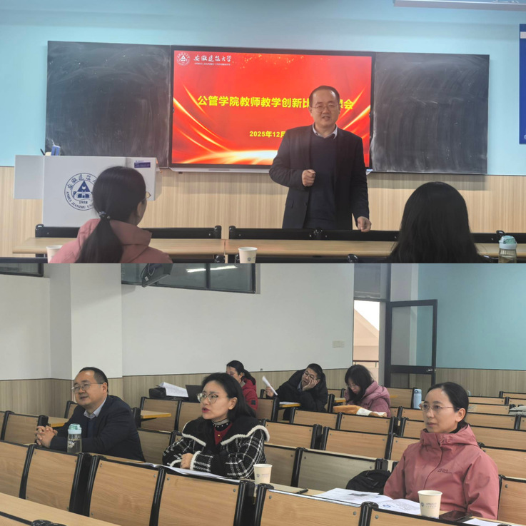 本网讯  为深化教育教学改革,夯实教师教学核心能力,助力优质课程打磨,承接此前学院教学创新比赛成果,12月31日上午,公管学院在金寨路校区智慧教室F512如期开展学校教学创新比赛赛前磨课活动。本次活动特别全国高校教师教学创新大赛二等奖获得者张媛、胡安琪两位老师担任点评嘉宾,即将代表公管学院参加比赛的王鹏、郑敏、赵斌斌、朱永甜、张童及其他相关老师全程参与,副院长连瑞瑞主持活动