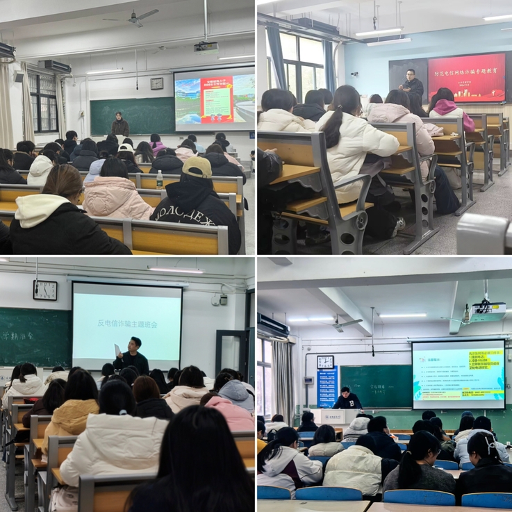 主题班会筑防线,反诈知识入心间。学院各年级辅导员组织召开防范电信诈骗安全教育主题班会,将反诈教育融入日常思政教育与班级管理,做到全员覆盖、不漏一人。班会上,辅导员结合近年来高校高发电信诈骗典型案例,系统梳理并详细讲解校园常见诈骗类型,要求学生重点防范兼职刷单返利、冒充客服退款、虚假网络贷款、游戏账号交易、冒充亲友老师求助等学生易中招骗局,并重点强调“两卡”犯罪警示教育,明确讲解手机卡、银行卡(简称“两卡”)出租、出借、出售的严重法律后果,要坚决杜绝因贪图小利沦为诈骗分子的“工具人”,从源头切断电信诈骗犯罪链条。