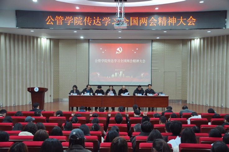 本网讯 3月18日下午,学院在金寨路校区图书馆二楼报告厅召开传达学习全国两会精神大会。学院领导班子成员、全体师生党员参加会议,学院党委书记汤娜主持会议。