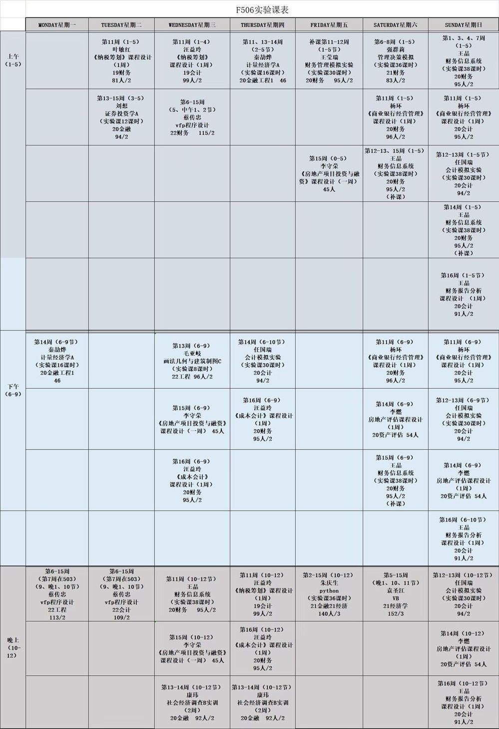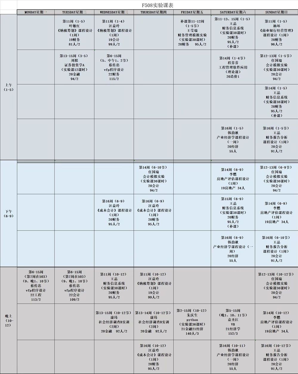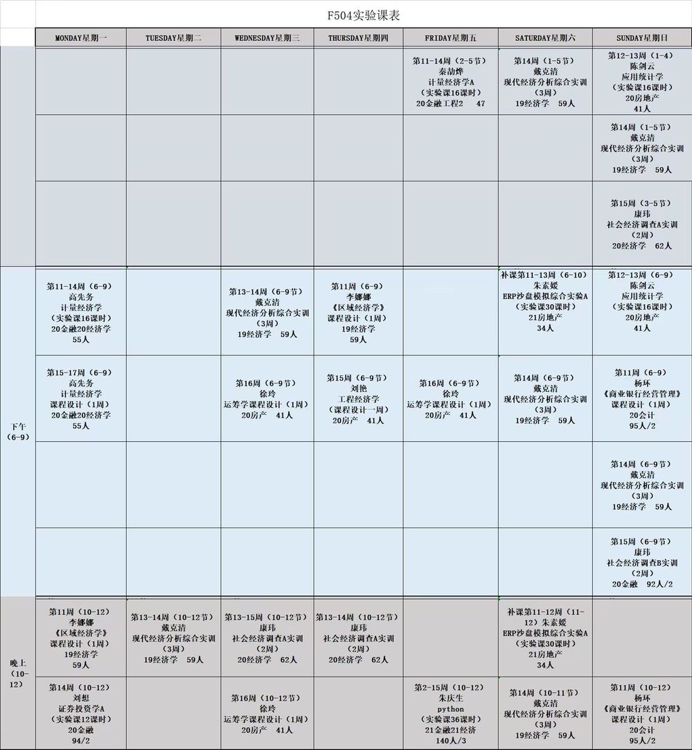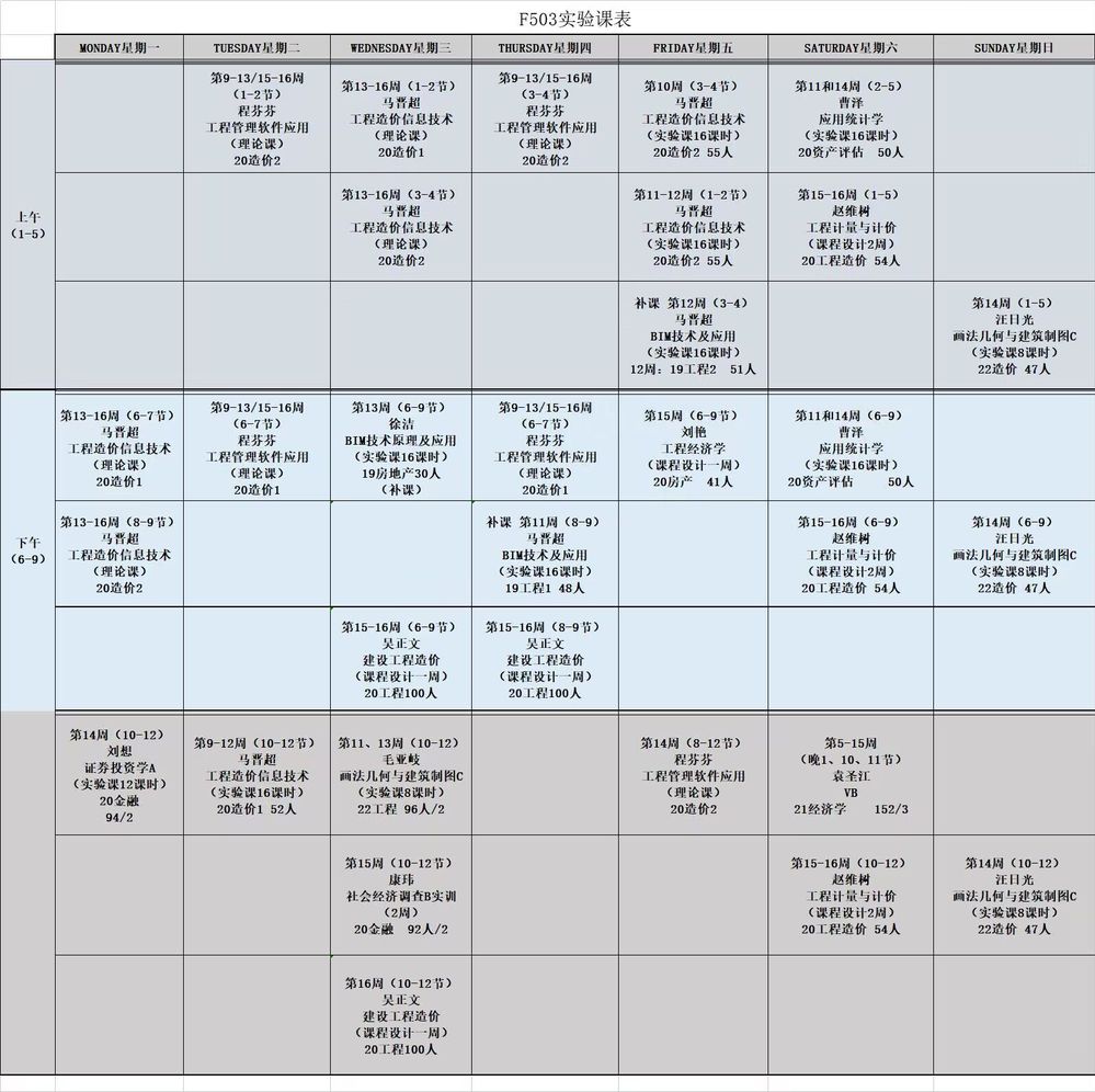 2022-2023学年第一学期实验室课表