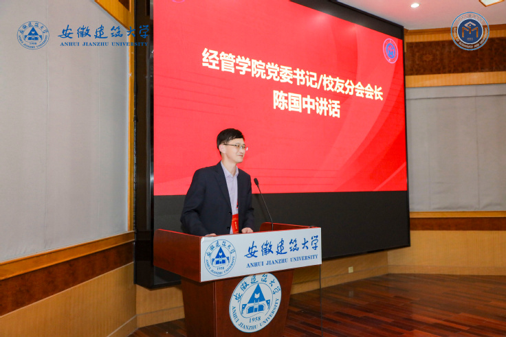 学院2000级工程管理专业校友、北京东方雨虹防水技术股份有限公司新品事业部浙江区域总经理潘波作为校友代表进行发言。他表示本次活动搭建了校友间增进友谊、反哺母校、回报社会的平台,加强了校友之间及校友和母校之间的联系,希望借助校友分会平台汇聚更广泛的校友资源,以更强大的力量助力学校各项事业发展,为建设国内一流、特色鲜明的高水平建筑大学贡献力量。