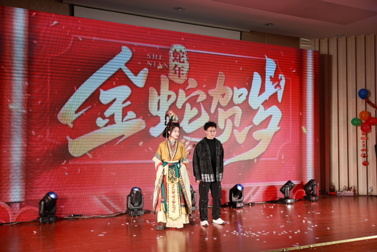 迎新年文艺展演在平转立乐队开场歌曲串烧中进入高潮。本次展演内容丰富,形式多样,涵盖了歌曲、舞蹈、小品、快板、演讲等多种表演形式,旨在展示学院师生在过去一年所取得的辉煌成就,表达对新年的美好祝愿。《易冷烟花乱,姬别霸王叹》和《舞蹈串烧》展现出不同舞蹈艺术的魅力,独唱《光年之外》《至少还有你》体现了流行文化艺术的风采,快板《武松打店》更是以独特的表演形式带大家体验丰富的故事情节,既领略到传统曲艺快板的魅力,又重温经典故事,感受传统文化的深厚内涵。《学习的诱惑》通过独特的配音形式呈现学习生活相关的故事,让原本略显枯燥的日常琐碎变得妙趣横生。