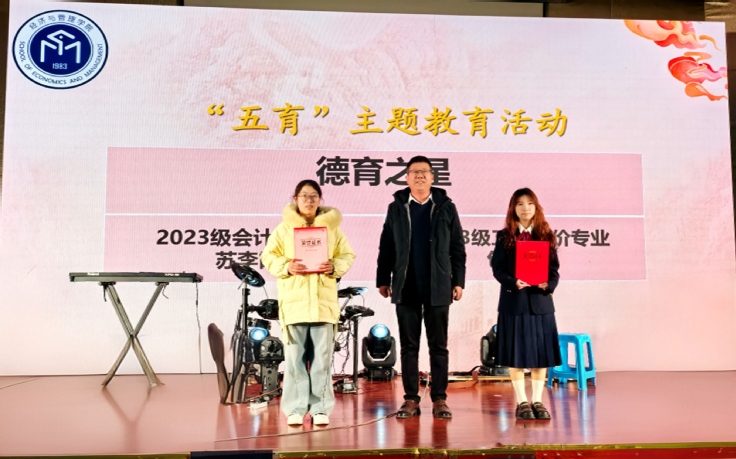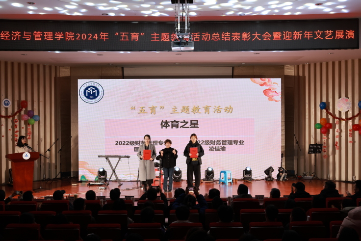 本网讯 为贯彻立德树人的根本任务,持续深入推进“五育融合”的育人模式,营造高品质的校园文化环境。12月31日,经管学院在金寨路校区图书馆报告厅举办“五育”主题教育活动总结表彰大会暨迎新年文艺展演。学校相关部门领导、学院领导班子、教师代表、校友代表亲临现场,与250余名学生代表一同共享盛会。此外,1500多名在校生和各届校友通过学院官方抖音号观看了活动直播。
