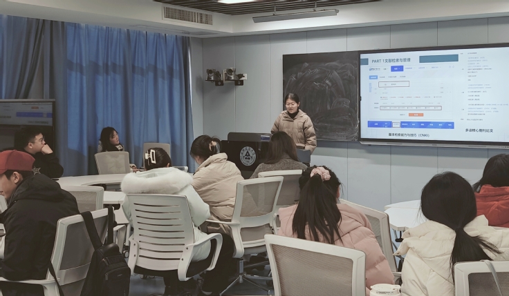 张玉荣以“论文写作和投稿经验分享”为主题,从论文选题构思、撰写规范、投稿技巧等方面为同学们分享了论文写作经验,并详细介绍了几款辅助阅读文献的软件。她表示,写作时要注意规范引用文献,并针对不同期刊的要求对论文格式进行调整修改。通过她的分享,同学们不仅找到了适合自己的写作方式和技巧,还掌握了论文的选题方法。