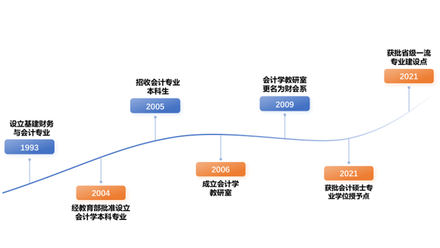 学校于1993年设立基建财务与会计专业,2004年设立会计学本科专业,2021年获批会计专业硕士学位授予点,同年获批省级一流专业建设点。会计学本科专业培养适应社会主义市场经济建设需要,具备人文素质、科学精神和诚信品质,掌握会计、管理、经济、法律、英语和大数据应用等多学科知识,具备较强的会计专业实践能力和创新思维,能够在营利性和非营利性机构从事会计、财务管理、审计、税务筹划等工作的应用型、复合型专业人才。