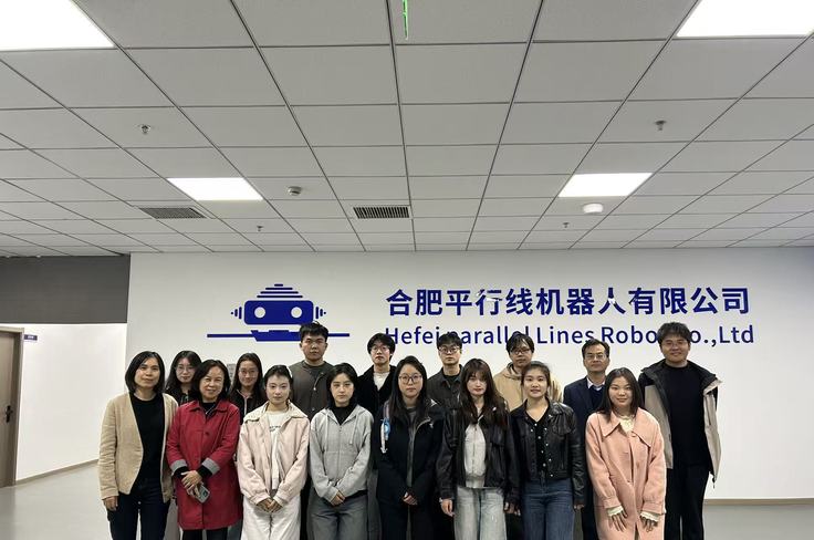 本网讯 为深化产教融合,创新人才培养模式,2025年10月30日下午,beat365在线唯一官网经济与管理学院院长彭志胜教授、孙伟教授、强群莉教授带领2025级数字经济硕士研究生走进合肥平行线机器人有限公司,开展了一场以数字化转型案例为主题的移动课堂进企业实践活动,近距离感受数字技术与实体经济的深度融合。合肥平行线机器人公司总经理陈志远、合肥赑歌数据科技有限公司的总经理印金汝和合肥巴灵瑞教育科技有限公司的总经理陈慧珺等企业领导热情接待了师生一行并为师生授课。