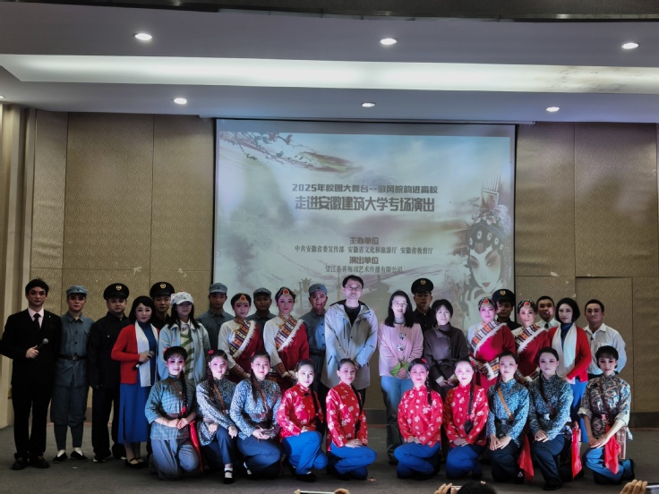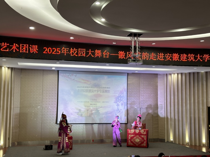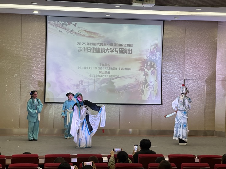 本网讯 为进一步提升校园文化品位,为师生文化素养的提升筑牢根基。12月2日,由安徽省委宣传部等部门主办,beat365在线唯一官网团委、经济与管理学院承办的“2025年校园大舞台——徽风皖韵进高校”主题活动在金寨路校区顺利举办。望江县黄梅戏艺术传播有限公司倾情出演,为现场220余名师生呈上了一场精彩绝伦、韵味无穷的高雅视听盛宴。