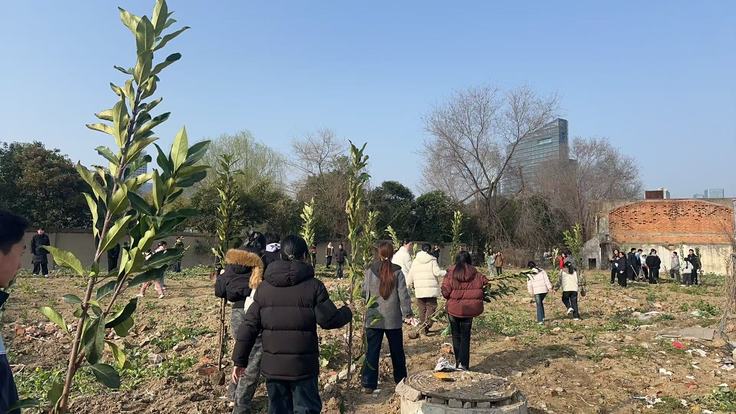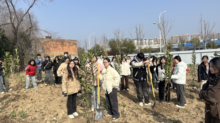 植树过程中,大学生志愿者们干劲十足,展现了建大学子良好的精神风貌和责任担当。少年青春的脸庞与新绿交相辉映,构成一道亮丽的风景线。活动最后,全体参与人员在亲手种下的树苗前合影留念,记录下这充满意义的春日瞬间,活动结束后,将工具整理归位。