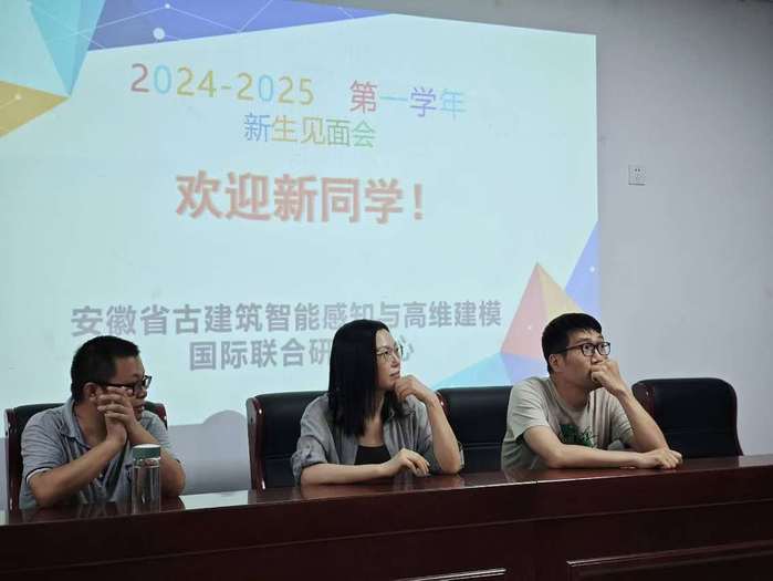 本网讯  2024年9月9日上中午,安徽省古建筑智能感知与高维建模国际联合研究中心在徽风楼1106会议室举办欢迎仪式,热烈欢迎新一届研一同学的加入。会议在热烈而温馨的氛围中进行,课题组的各位老师和同学们齐聚一堂,共同开启新学期的科研征程。