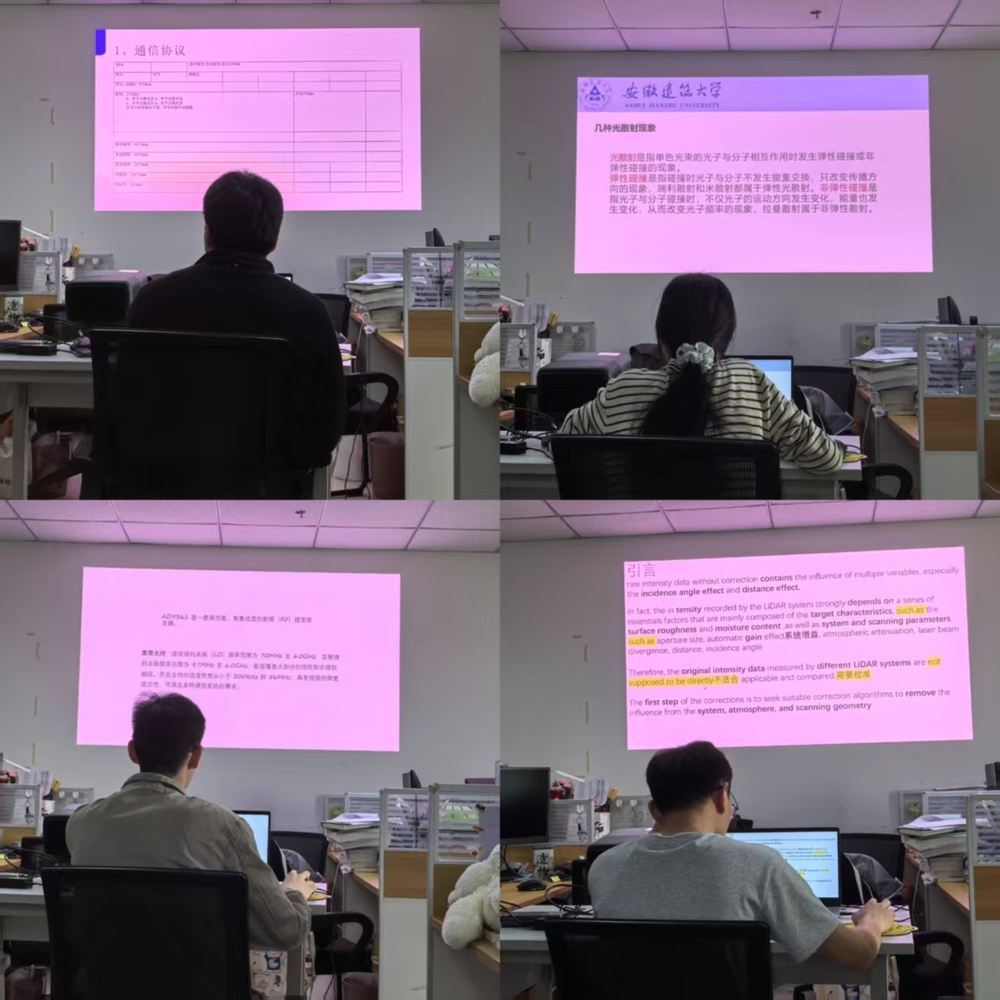 2025年4月7日午间,安徽省古建筑智能感知与高维建模国际联合研究中心在徽风楼608室开展学术研讨会。为进一步营造浓厚的学术氛围,拓展研究生的学术视野,本次研讨会由四位研一同学——梁俊杰、钮江涛、徐亚铃、邓林林,分别就自己的领域展开分享,以提升学生的科研表达与思辨能力。