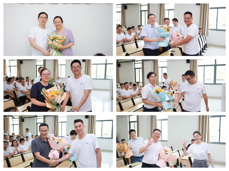 逸夫楼教室中,辅导员杜娟老师逐个点名,同学们纷纷喊到,一个都不能少!给老师们献花,分享毕业十几年来的工作、学习经历。酸甜苦辣多少事,都付笑谈中!