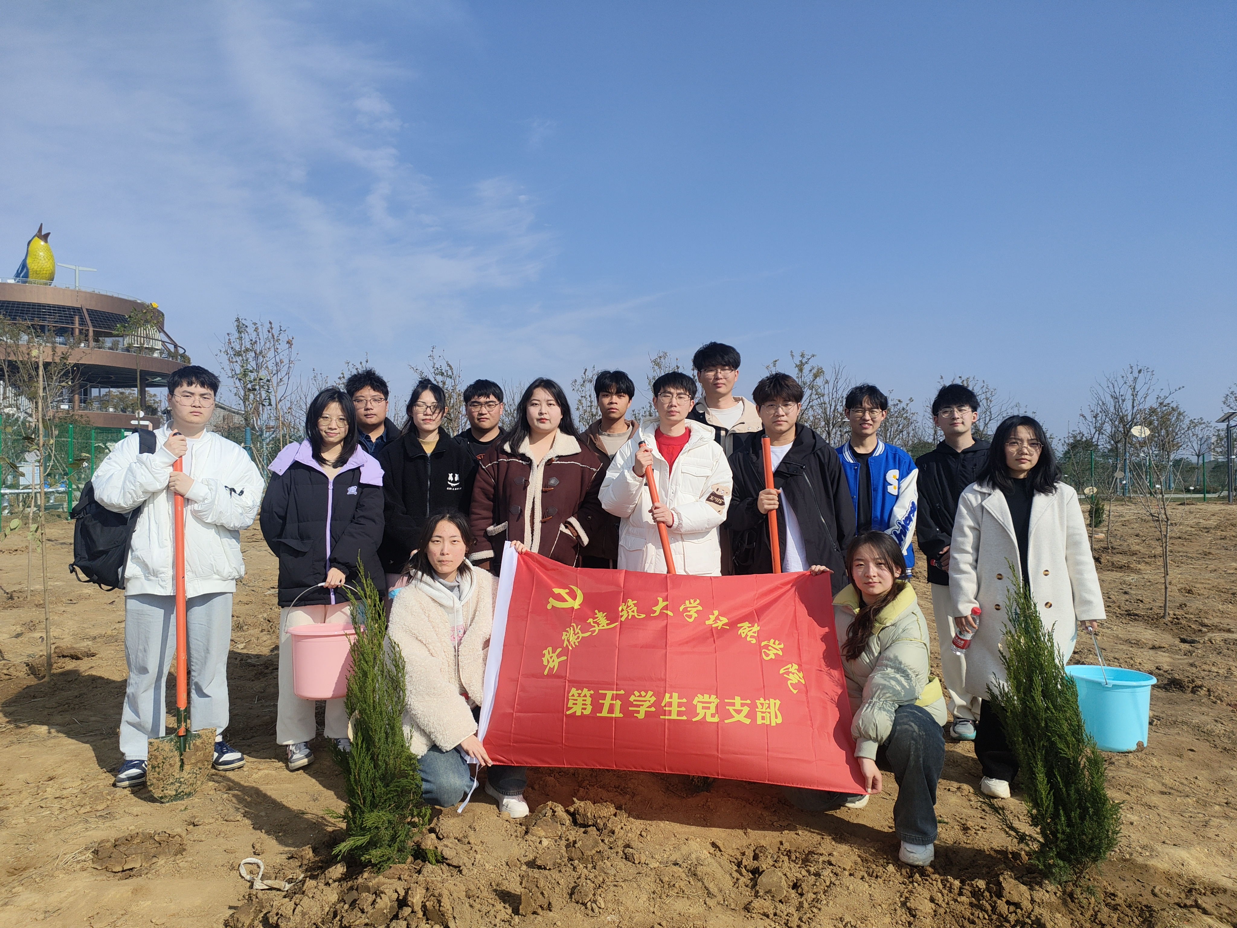 本网讯 草长莺飞三月天,植树添绿正当时。为深入学习贯彻习近平生态文明思想,增强广大党员环保与爱护环境的意识,进一步弘扬雷锋精神。在植树节到来之际,环能学院第五学生党支部来到肥西县三岗村,组织开展“为家园增绿,为党旗添彩”义务植树主题党日活动,通过“党建红”引领“生态绿”,为乡村生态发展植绿增绿。