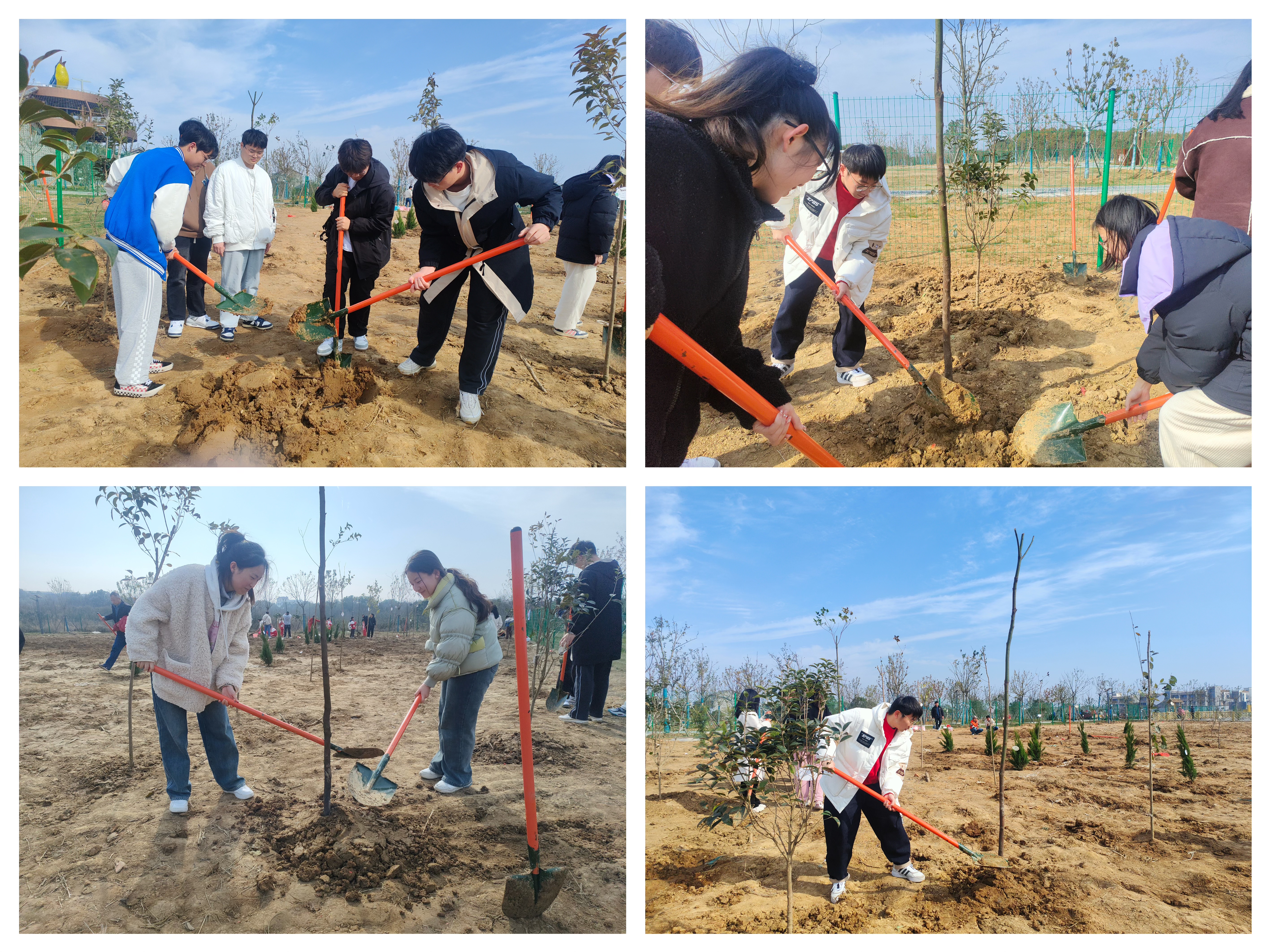 在植树现场,支部党员们分工有序,精神饱满、干劲十足,大家挥铁锹、挖坑、植树、铲土,齐心协力将一棵棵充满希望的树木栽入土壤中。经过近两个小时的“奋战”,大家默契配合地完成了20余棵树苗的栽种,给树苗挂上亲手制作的护树牌,并浇下了树苗的第一桶水。种树培根,育人养心,劳作的过程让党员们领悟到劳动的意义,更加珍惜一草一木。