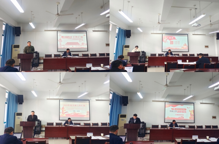 会上,学院14位党支部书记依次进行述职汇报,聚焦2023年度抓基层党建工作第一责任人的履职情况,深入剖析了履职中存在差距和不足,提出了今后工作目标与思路。各支部书记表示在过去一年始终坚持以习近平新时代中国特色社会主义思想为指导,组织支部党员认真学习宣传贯彻党的二十大精神,扎实开展主题教育,学懂弄通习近平新时代中国特色社会主义思想,引导支部党员做到坚决拥护“两个确立”,坚决做到“两个维护”。支部书记积极发挥党员先锋模范作用和提升党支部的战斗堡垒作用,教师党支部书记围绕学院事业发展,落实立德树人根本任务,坚持支部党建与学院学科专业建设相融合,教育管理监督教师党员,增强教师党员服务师生的责任感和使命感;各学生党支部重视经常性学习教育,规范日常党员管理,加强思想政治引领,积极开展“过政治生日”“寻找最美笔记”“多彩研途”主题党日和志愿服务等特色活动,不断提升学生党员意识和党性修养。