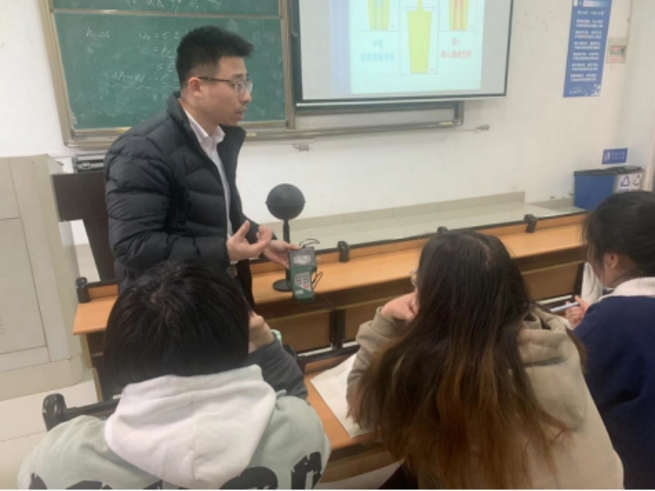 自任教以来,水滔滔老师先后主讲《建筑环境学》《建筑设备施工技术》《建环专业软件应用》《流体输配管网》《工科大学生创新训练与实践》等本科生课程以及《建筑环境数值模拟技术》等研究生课程,并承担了建筑环境与能源应用工程专业认识实习、毕业实习以及毕业设计等实践教学任务。在课堂教学中,他深入挖掘课程思政元素,着力将思政教育贯穿于课程教学的全过程。以主讲课程《建筑环境学》为例,该课程是建环专业学生接触专业内容的第一门课程,紧密结合了建筑环境科学发展的时代进程和前沿技术,强调实用性、创新性和应用性。水滔滔老师从建筑环境营造与能源消耗、环境保护、民生健康等角度出发,结合“双碳”目标、“生态文明建设”、“健康中国”等国家重大战略目标要求,梳理课程各章节中的课程思政元素,并有机融入课堂教学,让课程思政润物无声地传输给学生,从而引导学生树立正确的世界观、人生观和价值观,培养学生开展建筑环境营造的专业能力、职业使命感和社会责任感。
