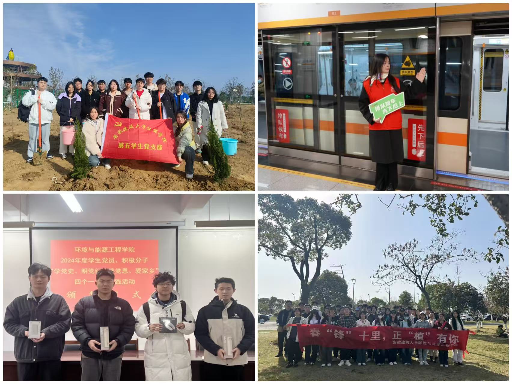 为发挥党组织的政治优势和组织优势,提高社会实践活动的实效性,环能学院学生党支部积极组织学生党员参加各类志愿服务活动,在实践中认识国情、了解社会、增长才干。学院连续多年结合党史学习教育、学习贯彻习近平新时代中国特色社会主义思想主题教育、党纪学习教育开展“感党恩、爱家乡”四个一主题实践活动,组织学生党员在暑假期间,探寻家乡红色资源,通过实地走访、深入基层一线,用足迹串联起家乡周边那些闪耀着革命光辉的红色坐标。结合学院专业特色,支部党员们带头以实际行动倡导绿色生活理念,学生第一、四、六党支部走进合肥岸上草原,开展“翠林添新章,绿意盎然行”植树活动。学生第五支部赴肥西县三岗村开展“为家园增绿,为党旗添彩”义务植树活动。九月迎新季,全体学生党员积极配合学院迎新工作,开设“党员迎新先锋岗”,为2024级新生保驾护航,用实际行动展现了党员的责任与担当。