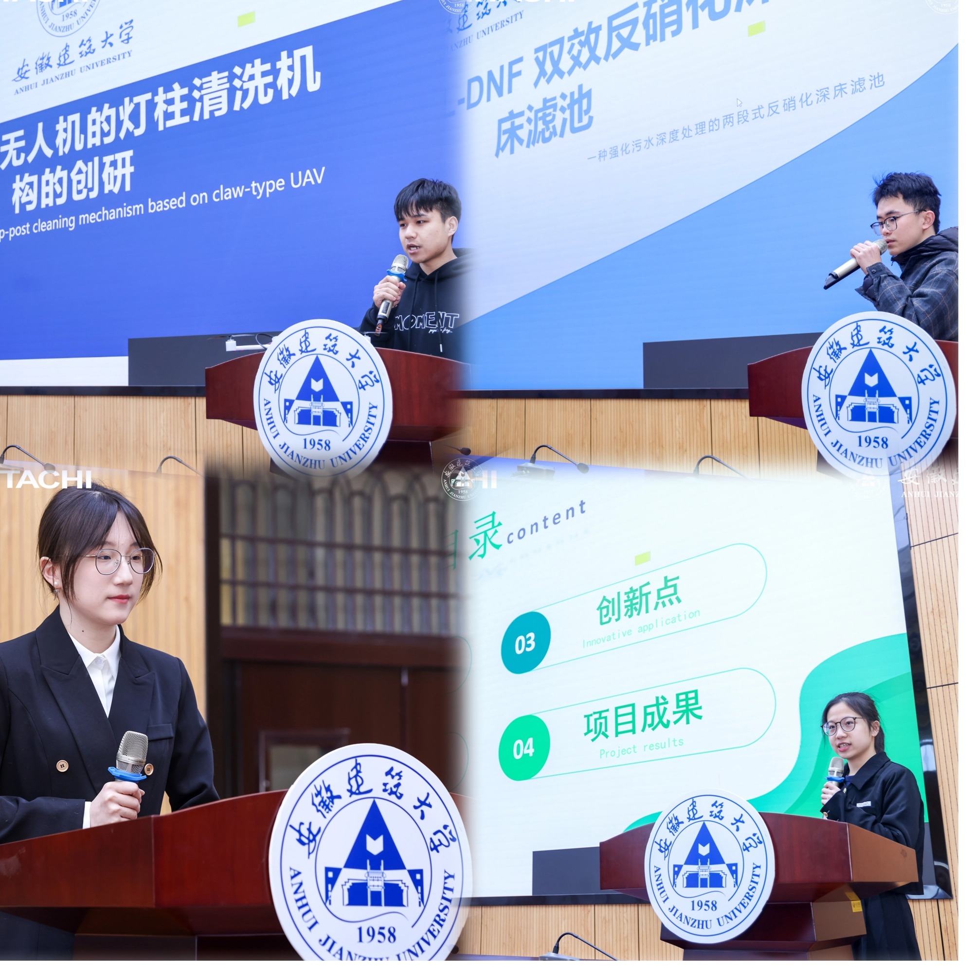 在比赛路演展示中,各参赛组作品紧扣节能减排、绿色能源主题,涉及储能发电、节水净化、环境治理等多个领域,成果形式多样,包括实物装置设计及制作、运行系统及软件设计改进、社会问题调查研究等多类型。参赛选手们构思新颖,创意满满,作品与绿色科技紧密结合,跟随节能减排的时代形势。在现场展示及问答环节中,评委老师对参赛作品进行了认真细致点评,从科学性、原创性、可行性等多方面对选手进行提问并提供了专业性的建议与指导。青岛海信日立空调营销股份有限公司合肥分公司何涛经理对比赛进行点评,他表示本届大赛参赛作品涌现出诸多创新亮点,既有聚焦建材降碳的“固碳”技术,也有引入智能监测的前沿探索,作品充分展现了当代大学生的创新担当。