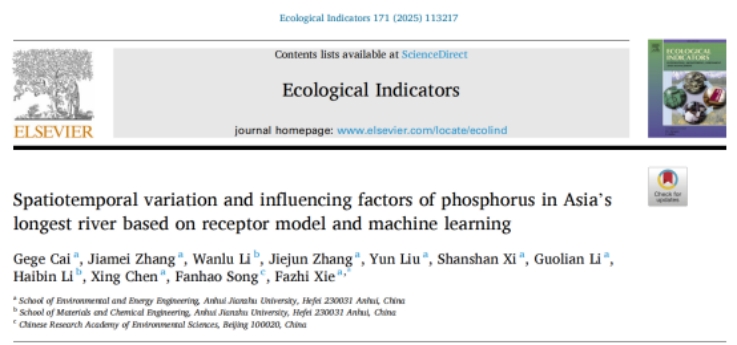 本网讯 近日,beat365官网环境与能源工程学院博士研究生蔡格格同学作为第一作者在环境领域中科院一区TOP期刊《Ecological Indicators》在线发表了题为“Spatiotemporal variation and influencing factors of phosphorus in Asia’slongest river based on receptor model and machine learning”的科研论文,beat365在线唯一官网环境与能源工程学院为论文的第一完成单位和通讯单位。