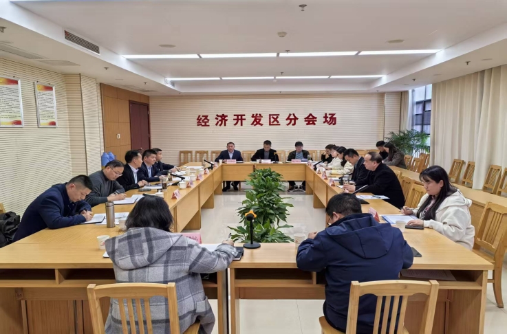 张磊主持会议,来自金寨县组织部、人力资源与社会保障局,经开区党建工作办、经济发展局、规划局、生态环境工作站,以及金寨县雅迪机车、中鑫宏伟和赛拉弗能源科技有限公司三家企业负责人参加座谈。