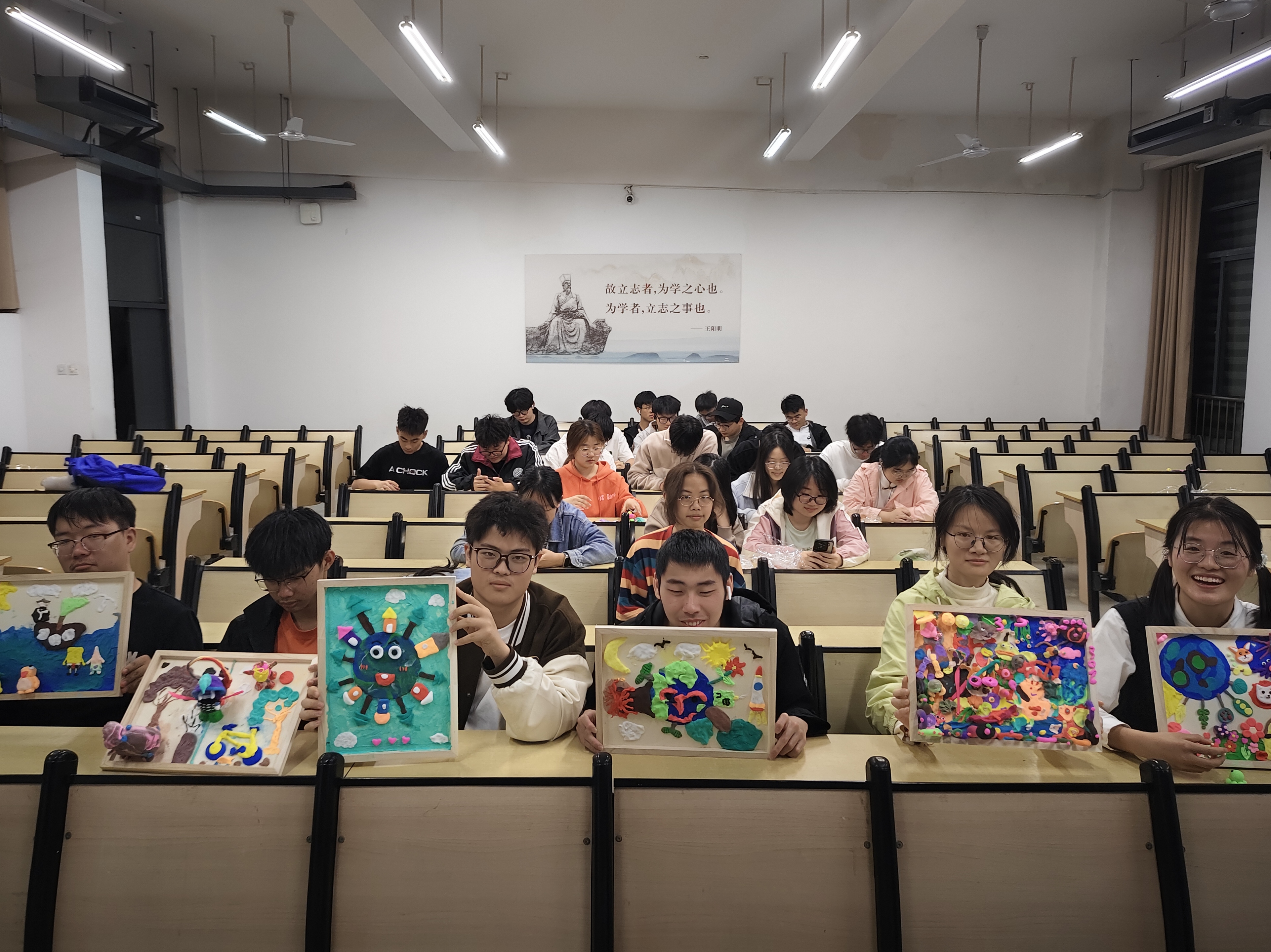 本网讯 为迎接第55个世界地球日的到来,进一步充实学生课余文化生活,提高大学生的美育素养,助力学生涵养心灵减压赋能。环能学院于4月13日在逸夫楼508教室开展“我眼中的美丽地球”纸黏土画框 创作活动,以艺术为载体传递环保之声。