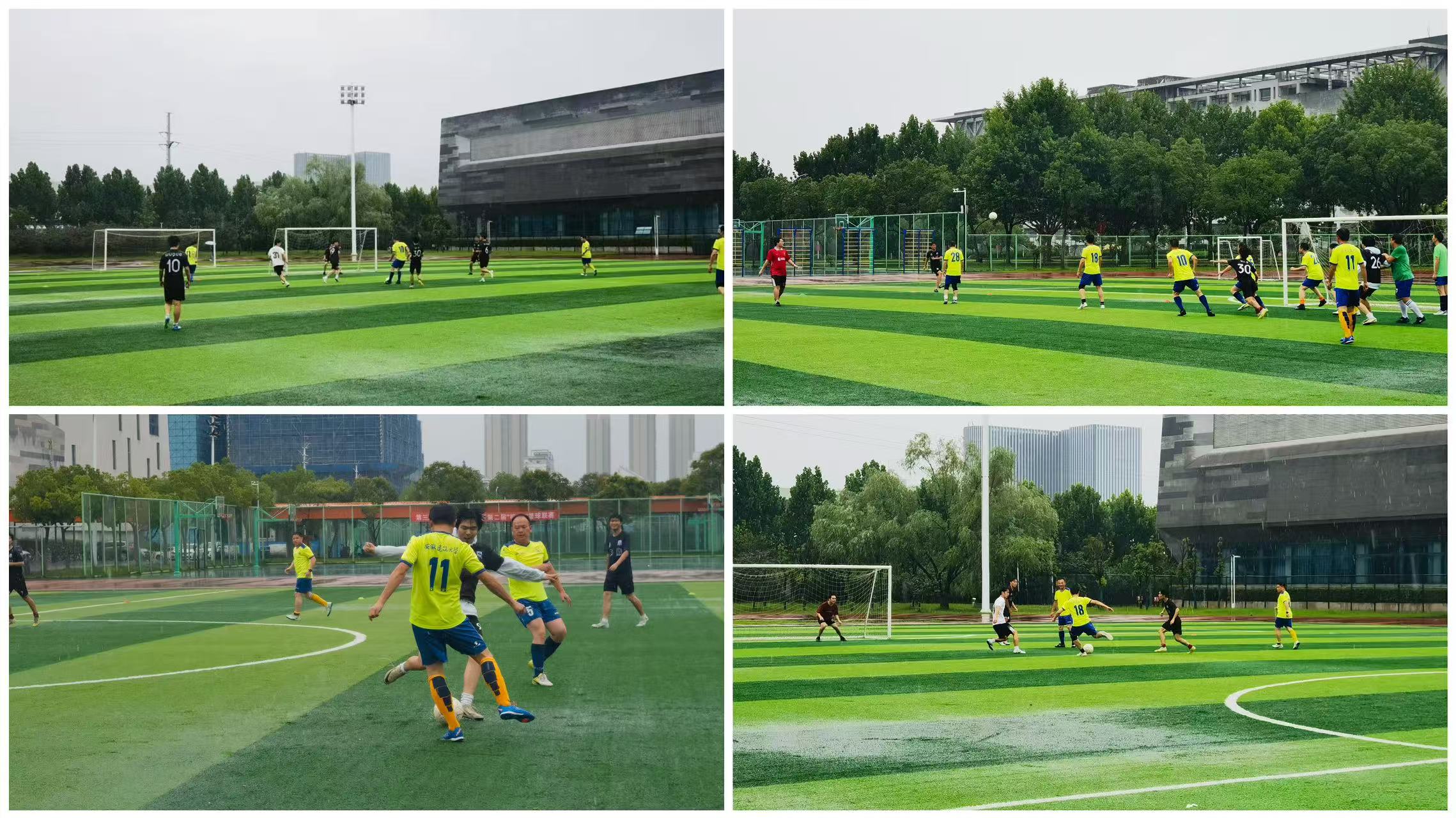 大雨如注,球场蒸腾起一片朦胧水雾,奔跑的身影在雨帘中穿梭如画,绿茵场上的雨水与汗水交织,教工队队员们平均年龄已逾45岁,却无一人犹豫退缩,他们心中怀揣着共同的心愿,为“孩子们”留下最特别的祝福。