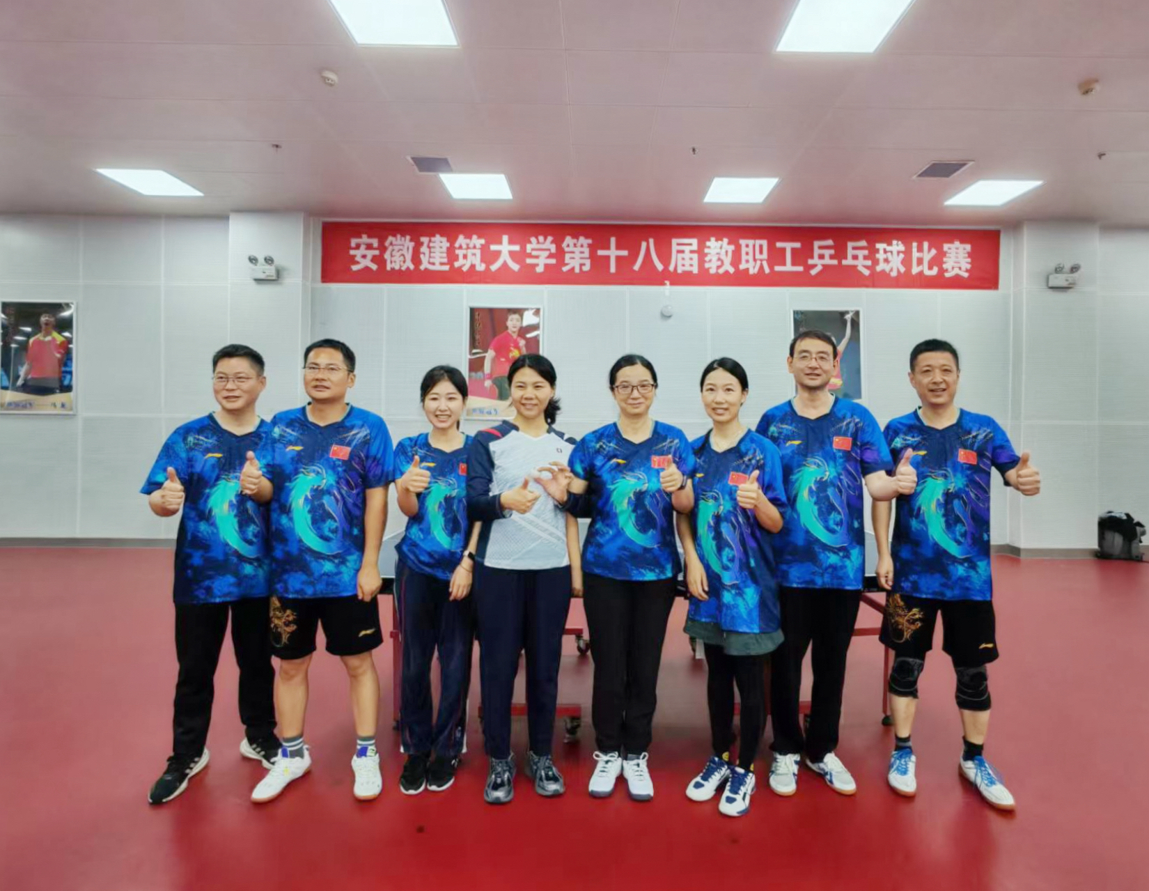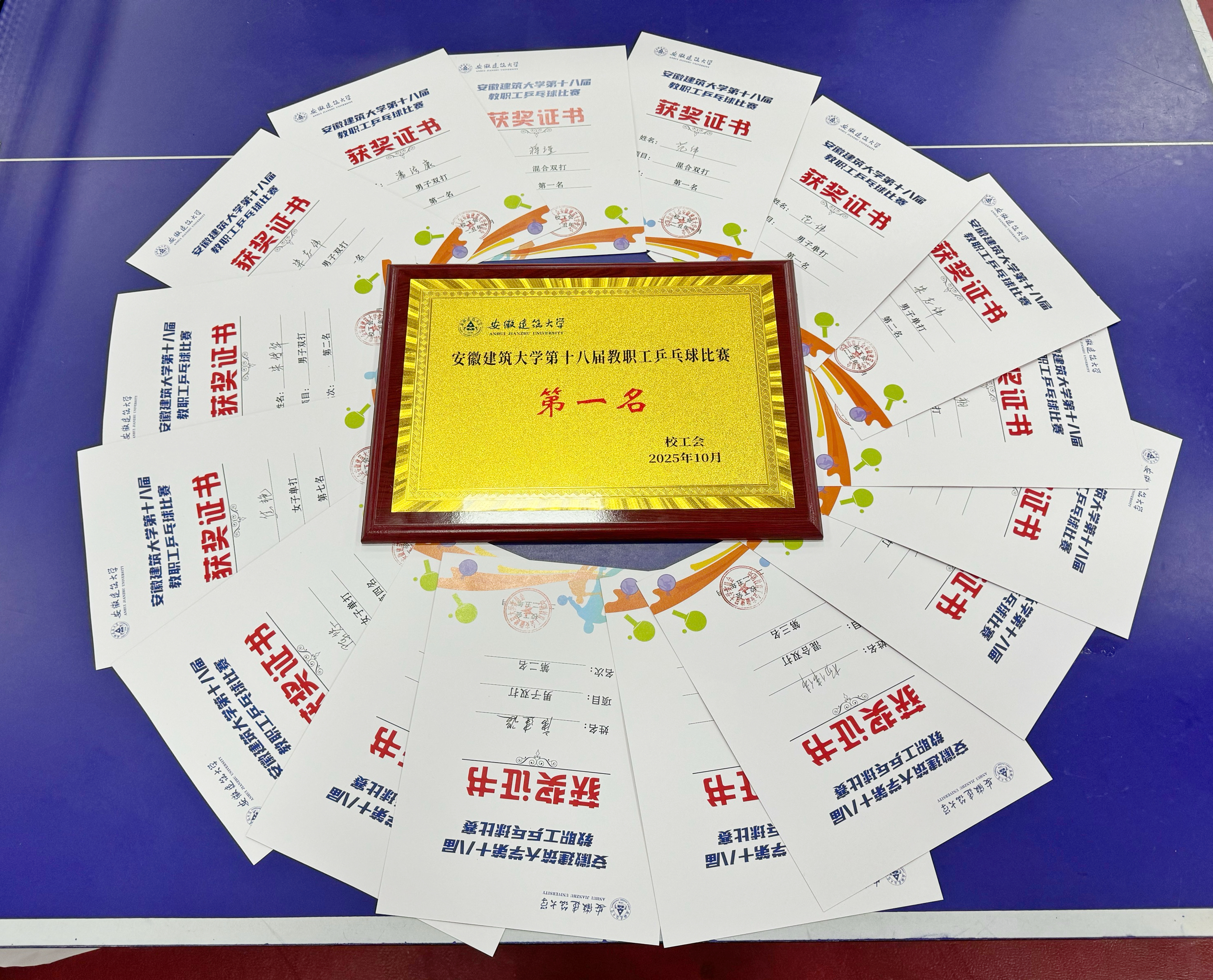 比赛中,范伟、朱志伟、潘法康、唐建设四位老师以出色的技艺包揽男子单打的前四名;蒋瑾、陈悠、王翔翔、焦艳分获女子单打的第二、四、六、七名;朱志伟/潘法康组合、唐建设/传华组合分获男子双打冠亚军;范伟/蒋瑾组合、杨伟伟/陈悠组合分获混合双打冠军和季军,充分体现团队协作的力量和默契。