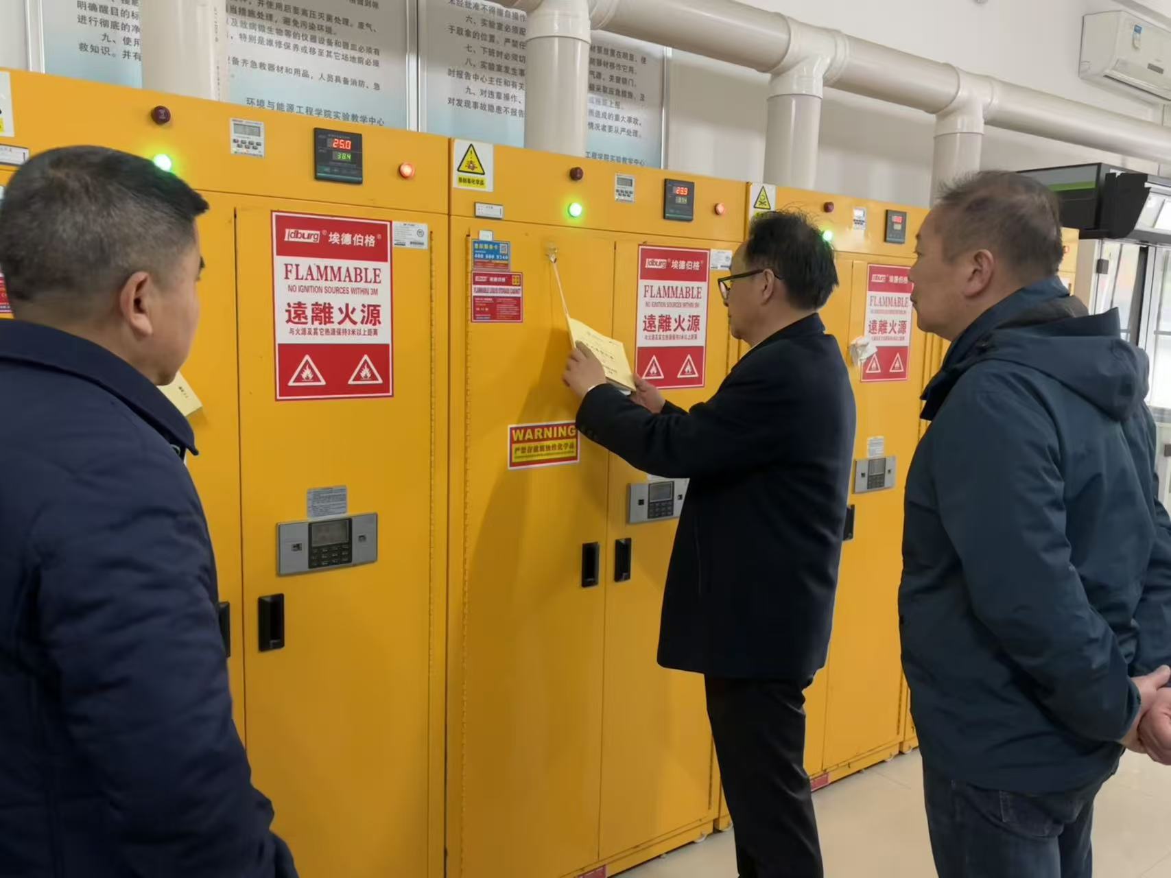 学院领导检查中强调,实验室安全是学院事业发展的生命线,是不可逾越的红线。本次检查总体情况良好,但个别实验室仍存在化学品存放不够规范、部分设备使用记录不全、安全标识有待更新等问题。实验室安全是学院发展的生命线和底线,各实验室负责人、导师是安全管理的第一责任人,必须将安全意识内化于心、外化于行,将各项规章制度落实落细。要求立即建立问题清单,明确整改时限与责任人,学院将不定期进行“回头看”。(作者:汪晓曼 一审:侯晓云 二审:解华明 三审:戴前宏)