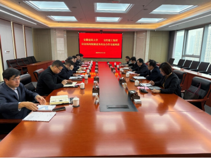 安徽交控建设工程集团有限公司董事长邰峥率领导班子和相关部门负责人热情接待,介绍企业发展历程、组织架构、主营业务板块的行业优势、发展愿景,分享标志性项目及人才需求导向,高度认可学校人才培养质量。