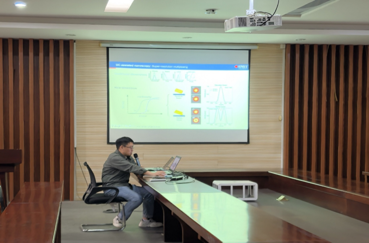 报告会上,丁磊博士以“上转换辅助的精密检测和加工”为主题,深入讲解了光学纳米探针独特非线性效应的调控机制,并分享了近红外单光束扫描超分辨成像技术的最新研究进展,该技术在环境污染物及微塑料识别、检测上具有重要应用潜力。
