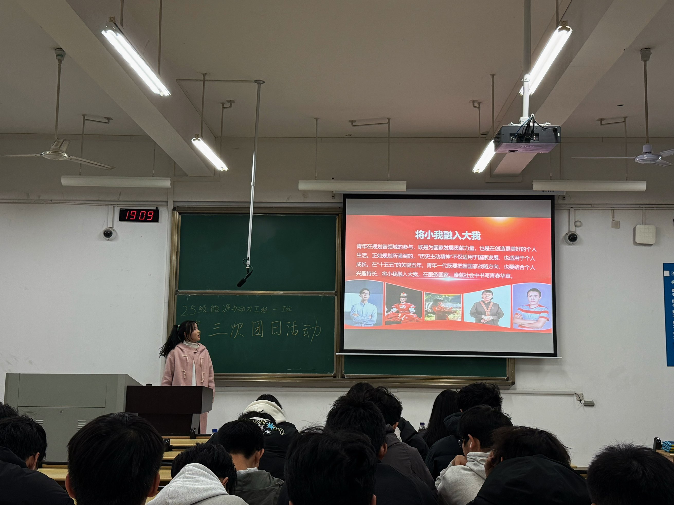 解读蓝图,聚焦核心。各团支部组织同学们回顾了“十四五”时期我国在经济社会发展,特别是生态文明建设领域取得的重大成就,为理解新征程奠定了坚实基础。在学习“十五五”规划纲要,大家重点聚焦关于节能减排工作的战略转型。同学们深入学习了从“能源消费总量和强度双控”向以“碳排放双控”为核心的综合管理体系的深刻转变。大家认识到,这一转变旨在为2030年前碳达峰提供决定性支撑,其特点体现在系统性更强、技术驱动更关键、市场作用更凸显。结合能源与动力工程专业,同学们探讨了在氢能、储能、碳捕集等前沿领域的学习方向,坚定了同学们通过参与科研竞赛、社会实践服务国家“双碳”目标的学业规划。