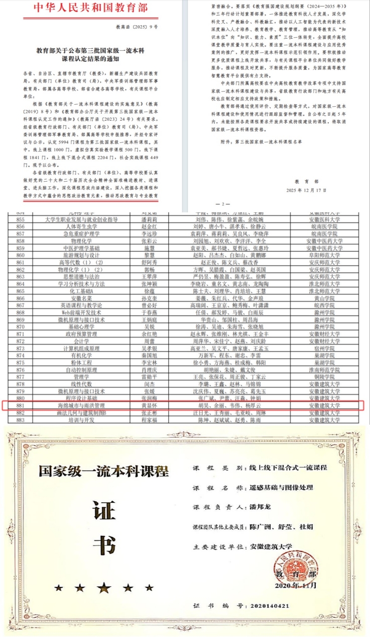 教学改革成果丰硕。学院斩获省部级教学成果奖6项(其中特等奖1项、一等奖2项),彰显教学研究与实践的深厚积淀。课程建设亮点纷呈,新增省部级(含国家级)一流课程8门,其中《遥感基础与图像处理》《海绵城市与雨洪管理》入选国家级一流课程,构建起“国家级 - 省部级 - 校级”三级一流课程体系,为学生提供高质量课程资源。