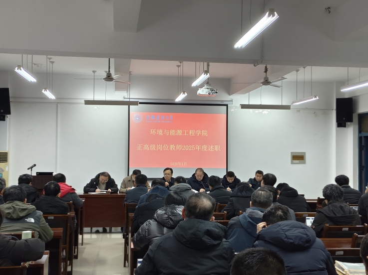本网讯 为全面总结2025年度工作成效,压实正高岗位教师履职责任,充分发挥其在教学科研、人才培养、学科建设中的示范引领作用,根据工作安排,1月26日,环境与能源工程学院在徽文楼202会议室召开2025年度正高级岗位教师述职大会,学院领导班子成员、全体教职工参会,会议由学院党委副书记、院长谢发之主持。