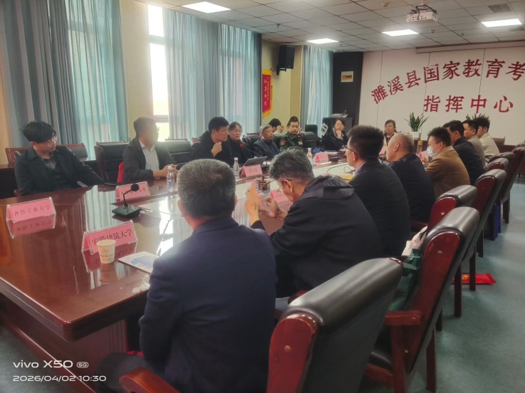 在濉溪县考试管理中心,环能学院教师与参会各高校、濉溪县各高中负责人开展面对面座谈交流,围绕高招工作对接、生源质量提升、人才培养衔接等重点问题深入探讨,凝聚育人共识。