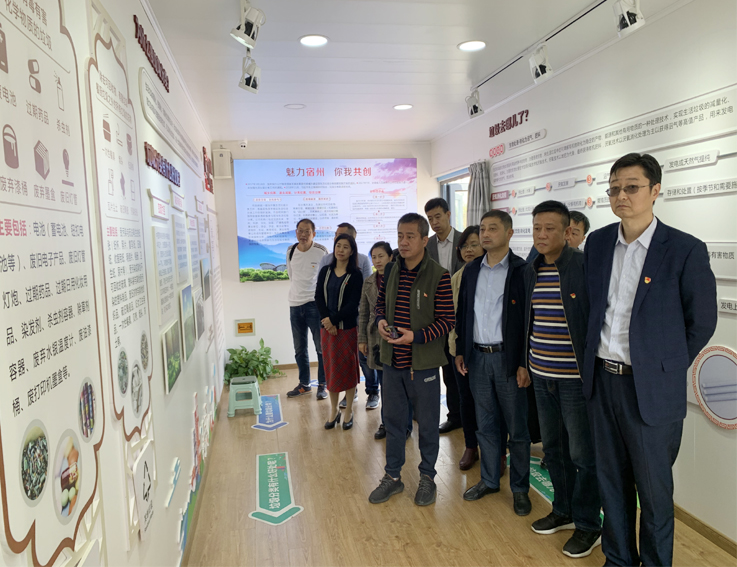 随后,集团党总支一行在胡兴旺的陪同下先后参观了宿州市城管局党建阵地综合展示厅、党员党性体验馆和市垃圾分类展馆。