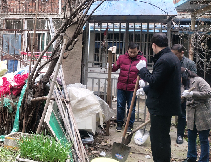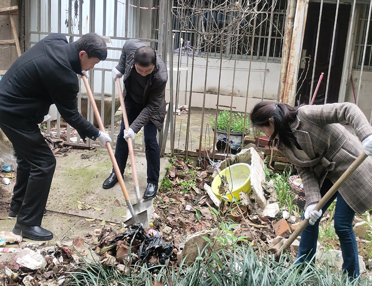 后勤服务集团党总支所属的三个党支部党员和北校区物业公司共同清理北校区家属楼周边区域的杂草、垃圾和堆积物。在劳动中,全体党员热情高涨,发扬不怕脏、不怕苦、不怕累的精神,相互配合、齐心协力。经过大家的努力,家属楼周边环境焕然一新。看着整洁有序的校园,大家露出了欣慰的笑容,心中增添了对学校的亲近、热爱,以及厚重的责任感。