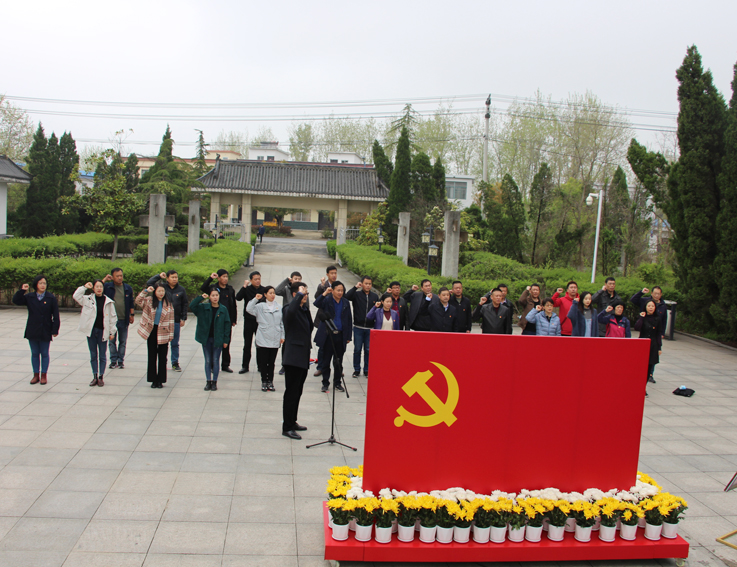 在革命烈士纪念碑前,大家面对鲜艳的党旗,庄重地举起右手,重温入党誓词。