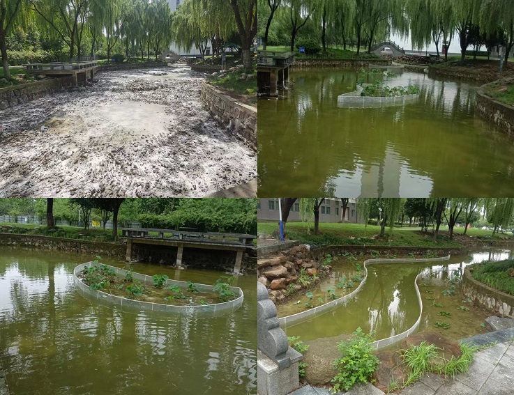 徽华楼南侧小湖毗邻规划中的光启堂,曾是师生课余休憩之处的场所。但由于长期缺乏系统管理,致使环境恶劣,湖内烂树叶子堆积,淤泥沉积厚达50厘米,不时散发臭气,水草大量生长堵塞水面,导致水质浑浊、蚊虫滋生,既影响校园景观,也成为生态环境的薄弱环节。