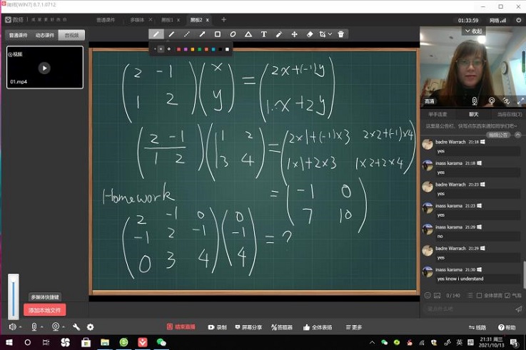 本学期留学生课程教学涉及8个学院、32门课程,针对不同层次、不同国家留学生灵活安排教学任务。本科留学生教学采用网络课堂+辅导答疑形式进行,教师及时上传教学材料、教学视频,组织学生自学并采用线上答疑、线上作业、线上考查等多种形式进行教学指导;硕士留学生由授课教师通过“微师”网络平台对留学生进行面对面的全英文教学,与校内研究生授课进程保持高度一致;汉语预科生通过线上课堂实时授课。留学生们虽身处不同的国家和时区,但都能够积极主动地参与到课堂学习之中。