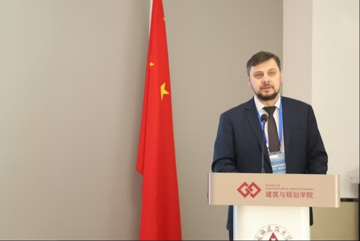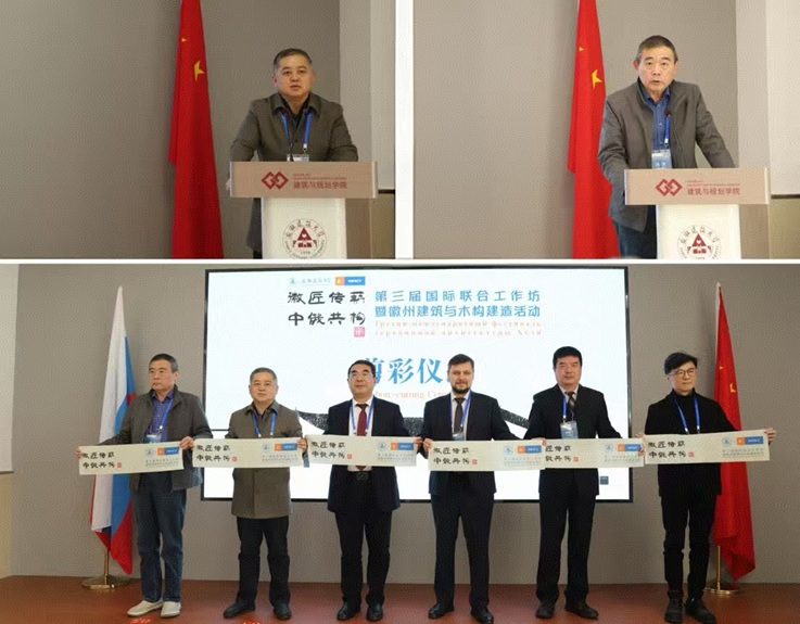 蔡国军首先代表全校师生,向远道而来的俄罗斯下诺夫哥罗德国立建筑与土木工程大学代表团表示最热烈的欢迎。在致辞中,蔡国军校长深情回顾了两校从相知到携手并进的合作历程。他指出,双方坚持“以建筑为媒介,以木构为语言”,持续深化在教育与科研领域的务实合作,本次工作坊是推动徽州建筑文化走向世界,促进中华优秀传统文化创造性转化与创新性发展的重要举措。他强调,期待以此为契机,进一步拓展中俄建筑教育合作新路径。谢戈列夫·德米特里在致辞中表示,两校合作已从理念共识转化为丰硕成果,并乘着“中俄教育交流年”的东风,迎来更广阔的前景。他高度评价本次活动是两校携手共进的生动实践,更是中俄人文交流与友谊深化的精彩缩影。