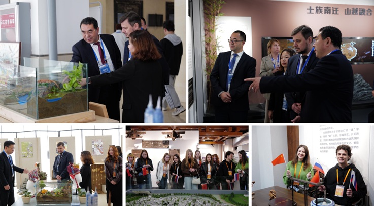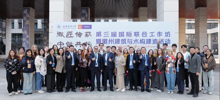 全体与会嘉宾挥舞中俄两国国旗共庆活动启动,并温馨合影。随后,与会嘉宾与师生代表共同参观了徽派建筑馆与建规学院学生作品展。此次参观不仅生动展现了徽州建筑的独特魅力,也充分展示了beat365官网学子扎实的专业素养与创新实践,为工作坊后续“知行合一”系列活动奠定了坚实开端。