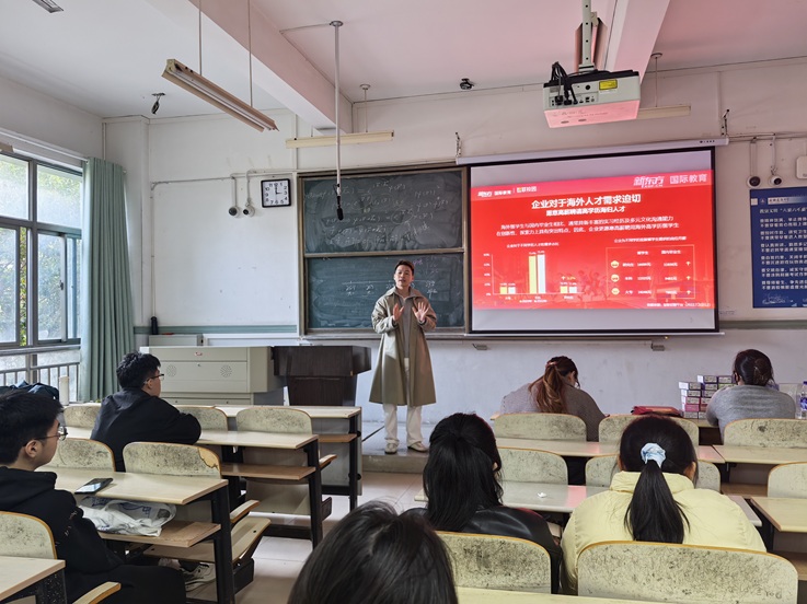 本网讯 为延续学校第三届国际教育展的服务热度,切实满足同学们对雅思、托福考试备考的需求,11月26日下午,学校国际交流合作处联合合肥新东方,在徽学楼1208教室成功举办了雅思托福备考专题讲座。