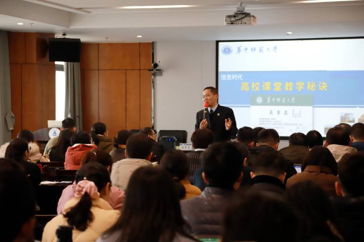 简短开班式后,学校邀请华中师范大学教师教育学院副院长、教师教学发展中心执行主任吴军其教授为教师们作了题为“信息时代高校课堂教学秘诀”的专题讲座。来自14个教学单位及4个行政部门的84位教师参加本次培训。