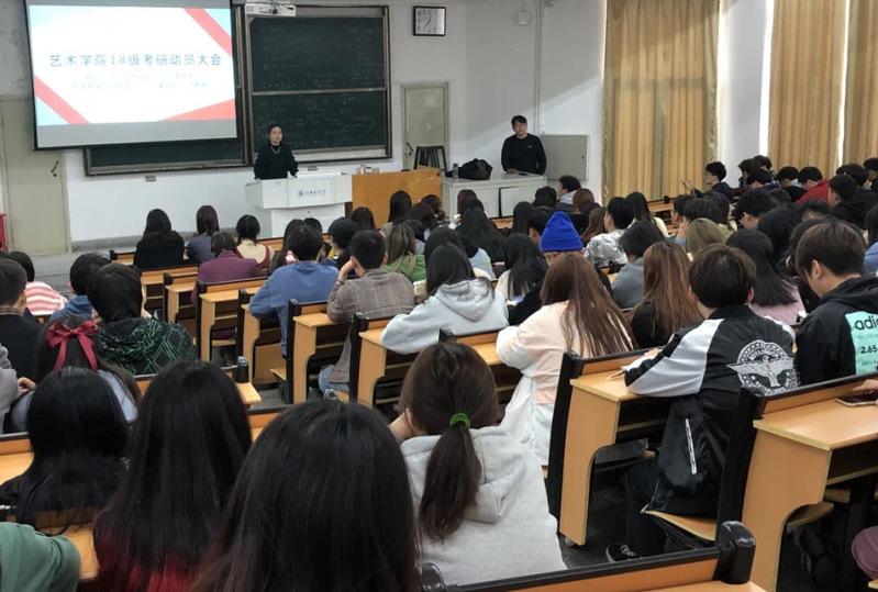 同时为了振奋艺术学院的考研士气,推动学生的考研动力,谷宗州老师还配合艺术学院开展了面向全院学生的考研动员大会,为同学们梳理复习科目的先后顺序、向同学们讲解如何应对考试中的突发情况,帮助同学们了解学科之间的联系以及如何成为一个有独立思考及钻研能力的大学生。并且向同学们普及了近年人数持续增长的考研趋势,以及考研的优势和获取更高学历的好处。谷宗州老师用风趣幽默的语气给同学们讲述了很多考研学生的实例,分享了其中的经验教训,鼓励在场的同学们积极参加考研,为以后的工作、学习奠定良好的基础。